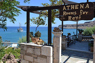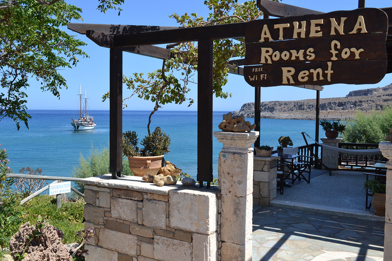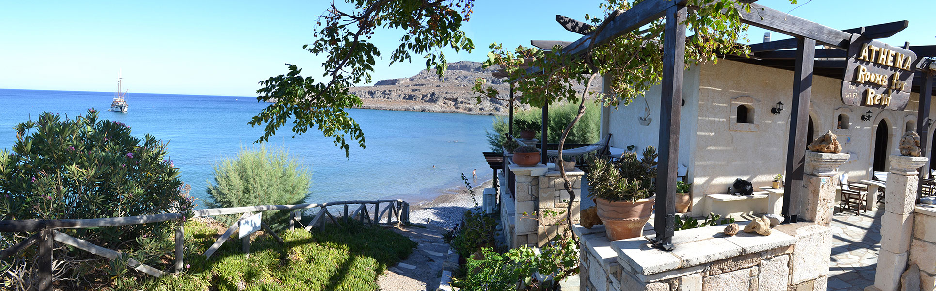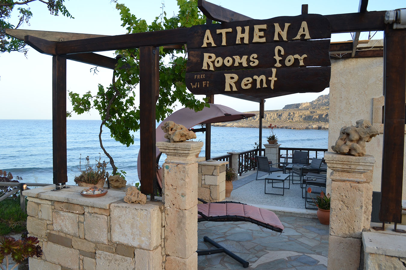 Τα παραδοσιακά δωμάτια «ΑΘΗΝΑ» βρίσκονται σε απόσταση αναπνοής απ' το κύμα (μόλις 20 μέτρα), με θέα το απέραντο γαλάζιο του όρμου της Κάτω Ζάκρου, με τα διάφανα κρυστάλλινα νερά και την μαγευτική ακρογιαλιά.