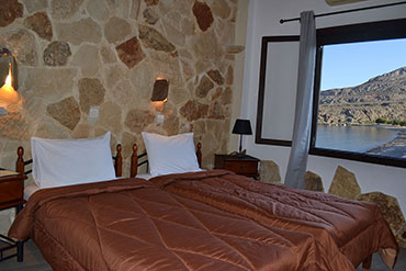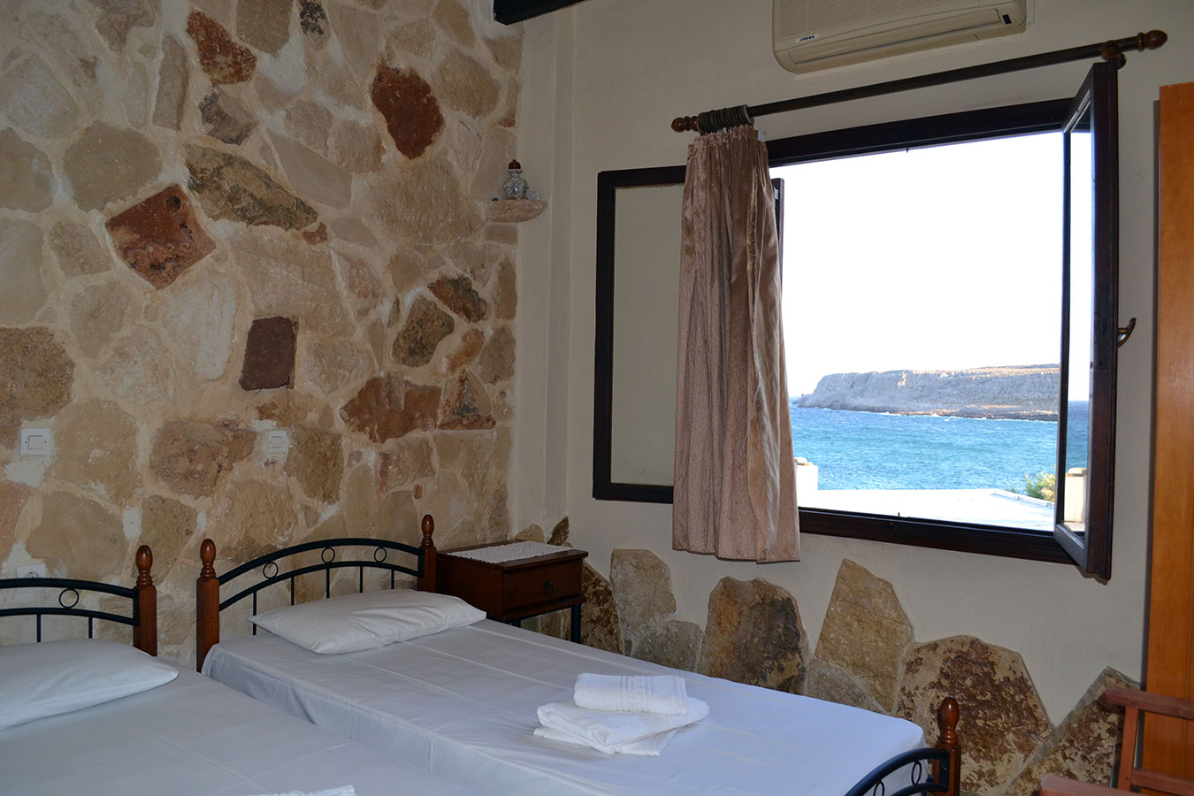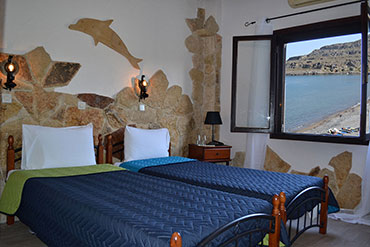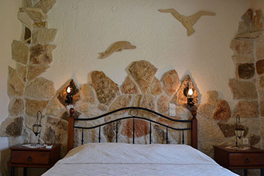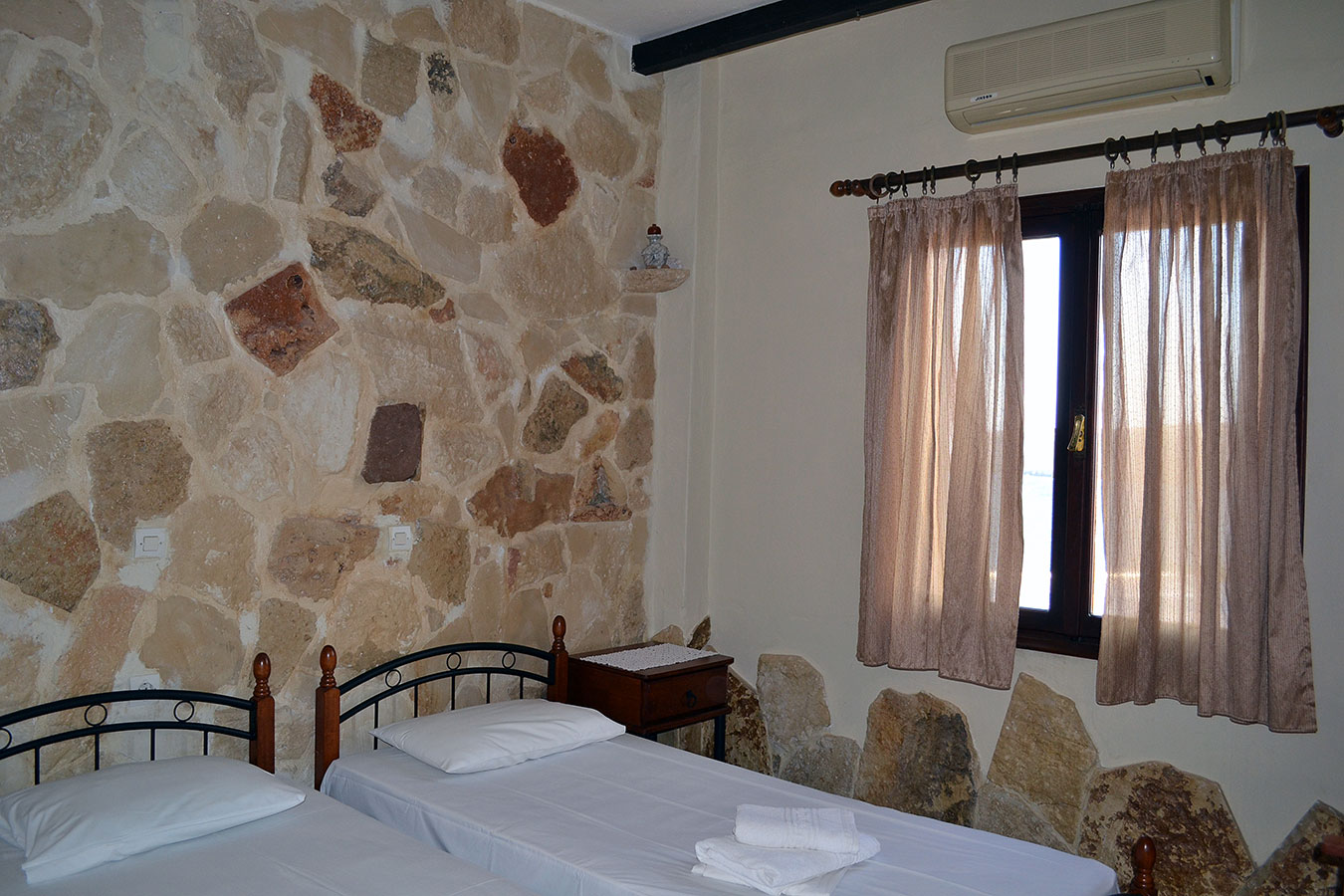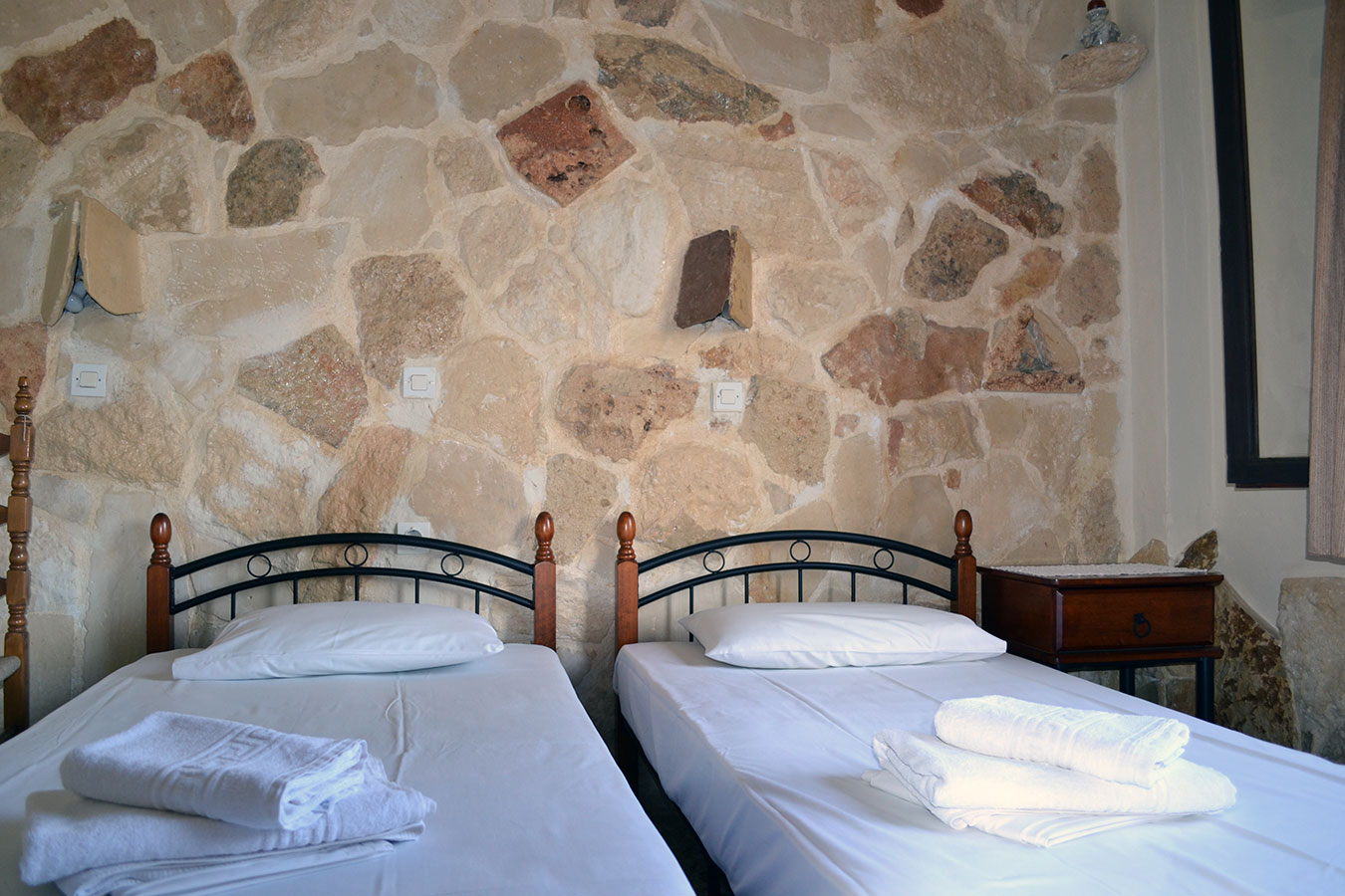 Όλα τα δωμάτια μας διαθέτουν 2 μονά ή 1 διπλό κρεβάτι. Μπορεί εφόσον ζητηθεί να τοποθετηθεί ένα ντιβάνι επιπλέον για την διαμονή συνολικά 3 ατόμων. Σε ένα από τα δωμάτια με διπλό κρεβάτι υπάρχει και πέτρινο παραδοσιακό τζάκι.